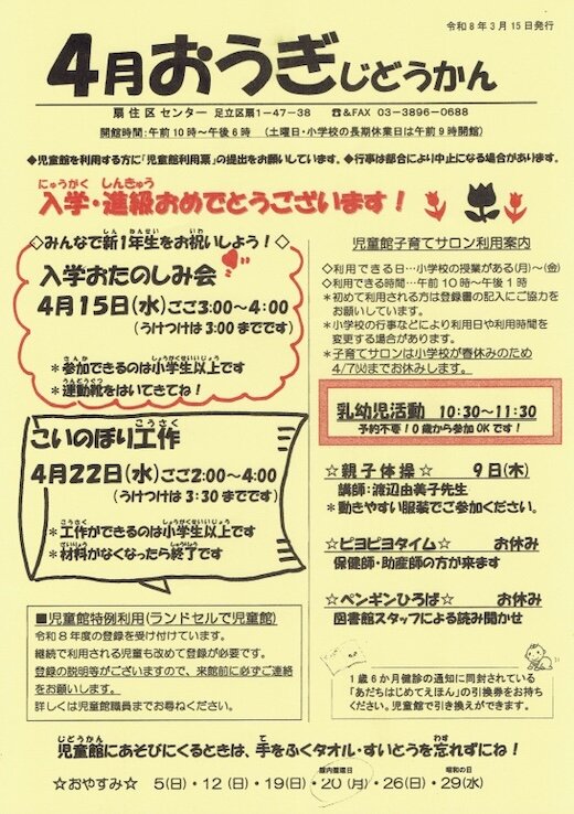 4月おうぎじどうかん[扇住区センター]/足立区