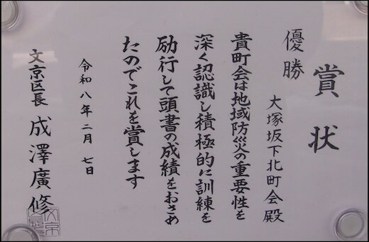 優勝賞状(令和8年2月7日)[大塚坂下北町会]/文京区