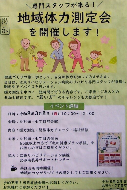 地域体力測定会を開催します(令和8年3月8日)/江東区