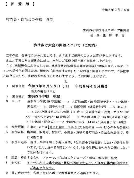 歩け歩け大会の開催について(令和8年3月29日)