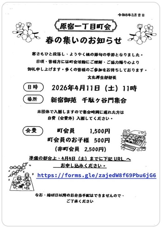 原宿一丁目町会「春の集い」のお知らせ(令和8年4月11日)