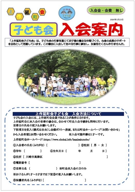 上作延町会子ども会入会案内