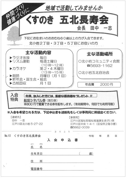 くすのき五北長寿会の入会募集案内