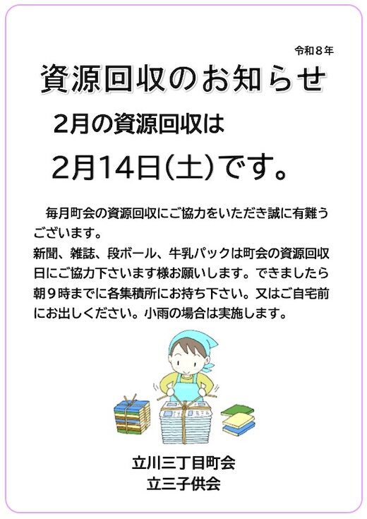 資源回収のお知らせ(令和8年2月14日)