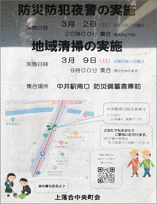 防災防犯夜警の実施(令和7年3月2日)/地域清掃の実施(令和7年3月9日)[上落合中央町会]/新宿区