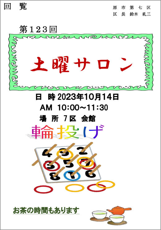 > 第123回 土曜サロン開催(令和5年10月14日)