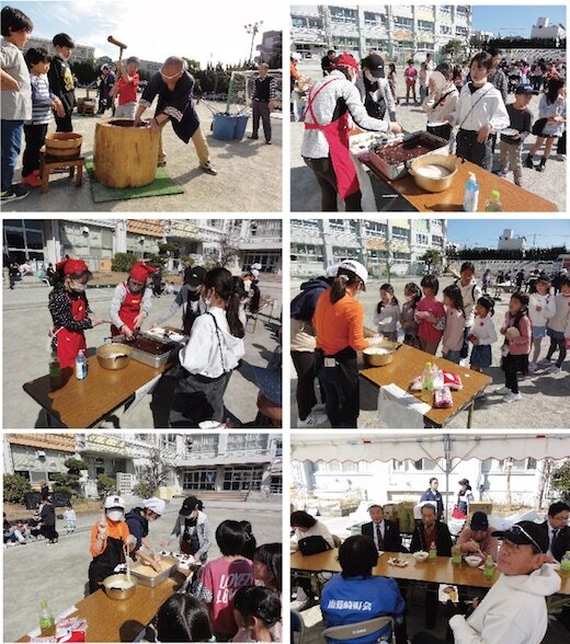2月18日(日)鎌田小学校の校庭をお借りして、コロナ禍中止をしておりました、4年ぶりとなります青少年部主催の餅つき大会を開催致しました。