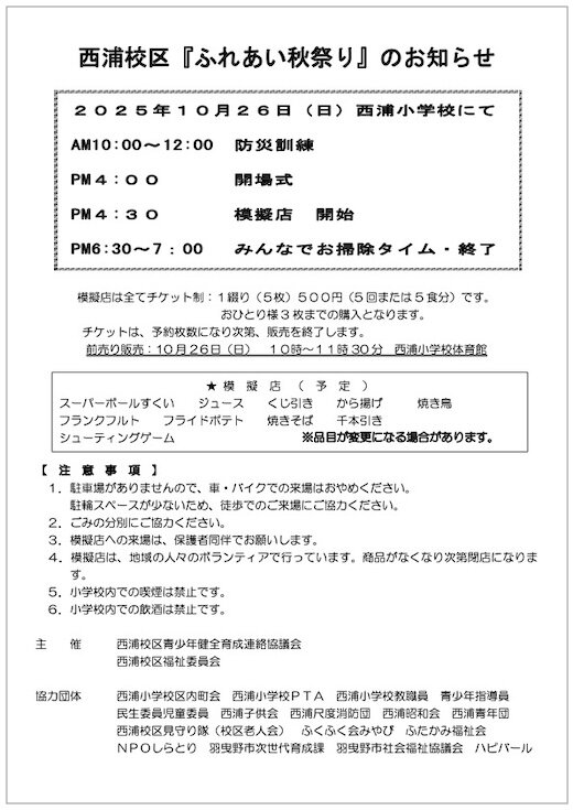 西浦町会の新着情報