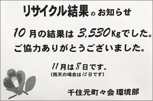 ホーム > 町会からのお知らせ > リサイクル結果のお知らせ(次回:令和2年11月8日)