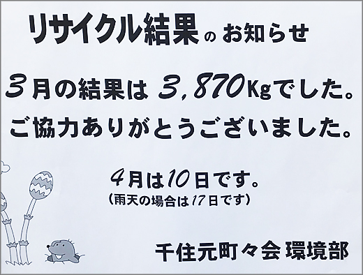 ホーム > 町会からのお知らせ > リサイクル結果のお知らせ(次回:令和4年4月10日)