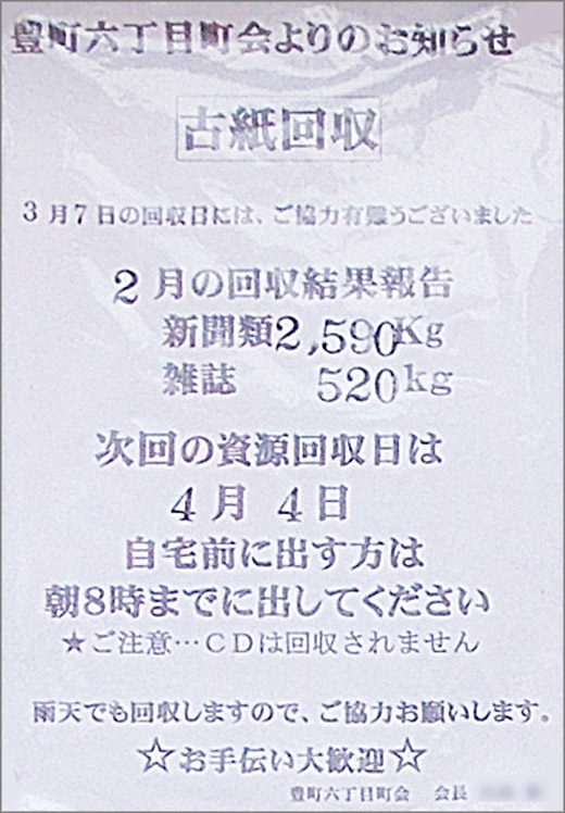 ホーム > 町会からのお知らせ > 古紙回収のお知らせ(次回:令和2年4月4日)